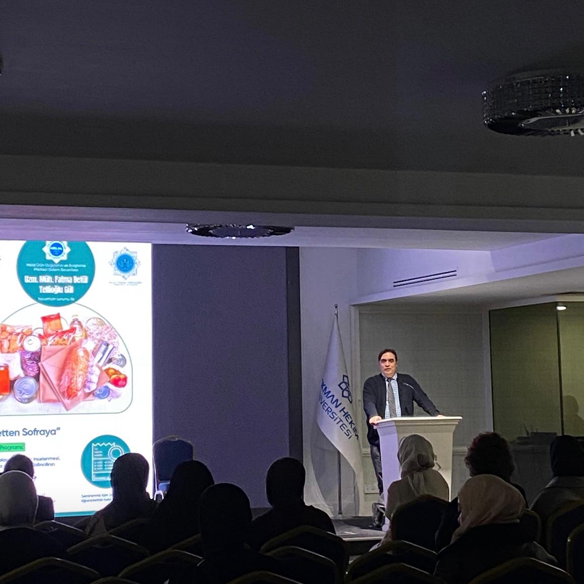 Üniversitemiz Helal Yaşam Topluluğu tarafından Helal Ürün Uygulama ve Araştırma Merkezimizin katkılarıyla “Etiketten Sofraya” başlıklı seminer gerçekleştirildi. Gıda güvenliği, etiket okuryazarlığı ve helal belgelendirme süreçlerinin ele alındığı programa öğrenciler katılım sağladı.
