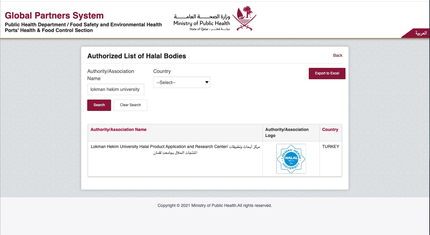 Merkezimiz Katar Halk Sağlığı Bakanlığının Yetkili Helal Kuruluşları Listesine Eklendi...